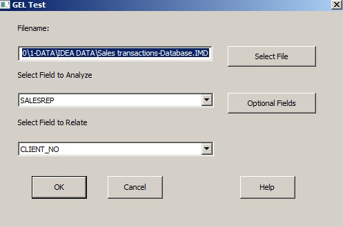 The GEL tests establish possible links between two selected fields over the entire data set. The first field is the key field and the second field is the element factor.